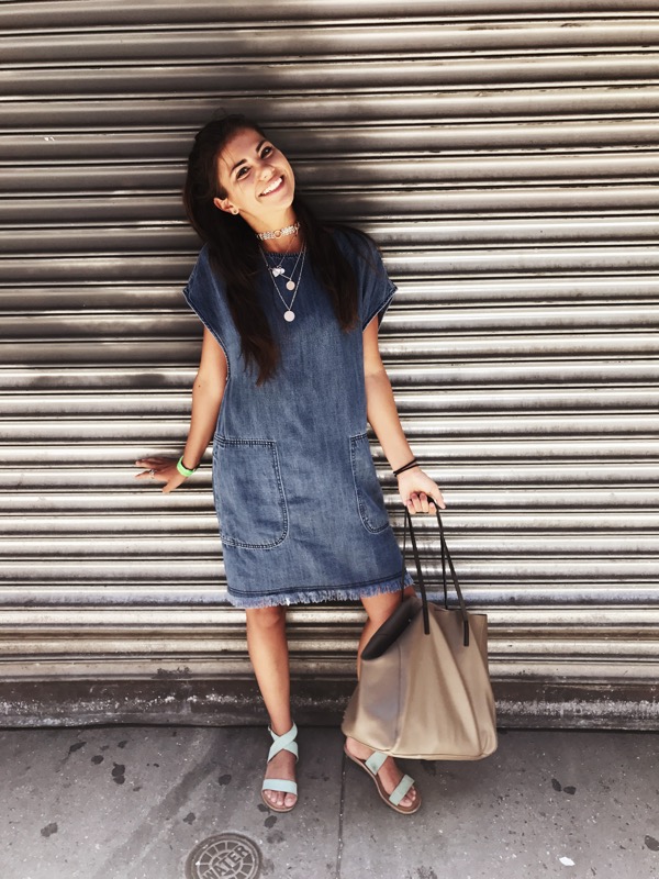 Today, I am going to a Women's Wear Daily event for NYC Fashion Week, so I wanted to dress a little nicer for school. I wore a jumpsuit from Abercrombie, which is a new favorite of mine because it's denim. I love it because it has a little tie up in the back to add some detail to it. My shoes are Stan Smiths from Adidas.
